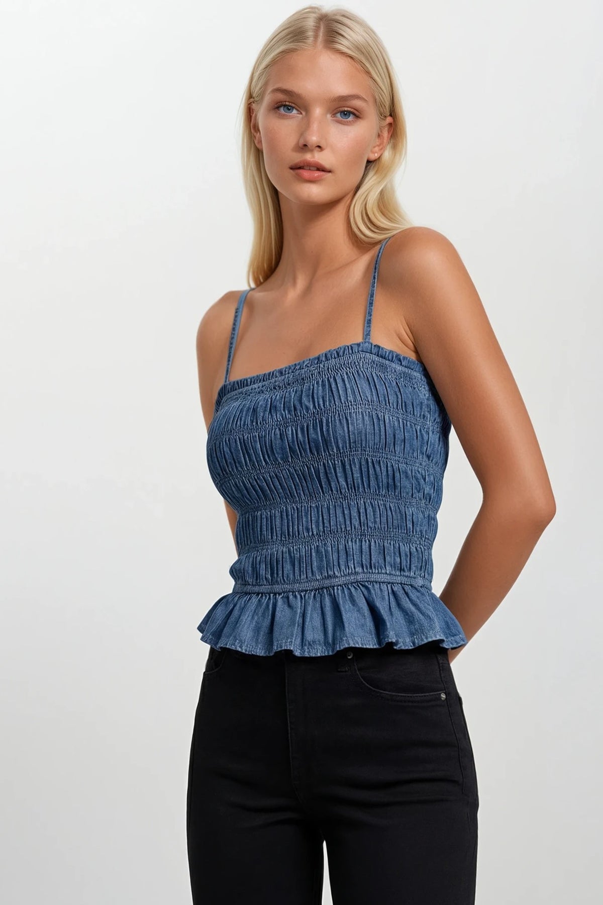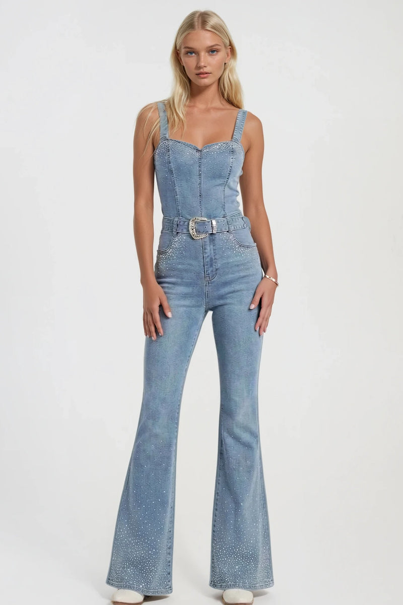 WIDE LEG HALTER NECK RIGID DENIM JUMPSUIT W4489RIB